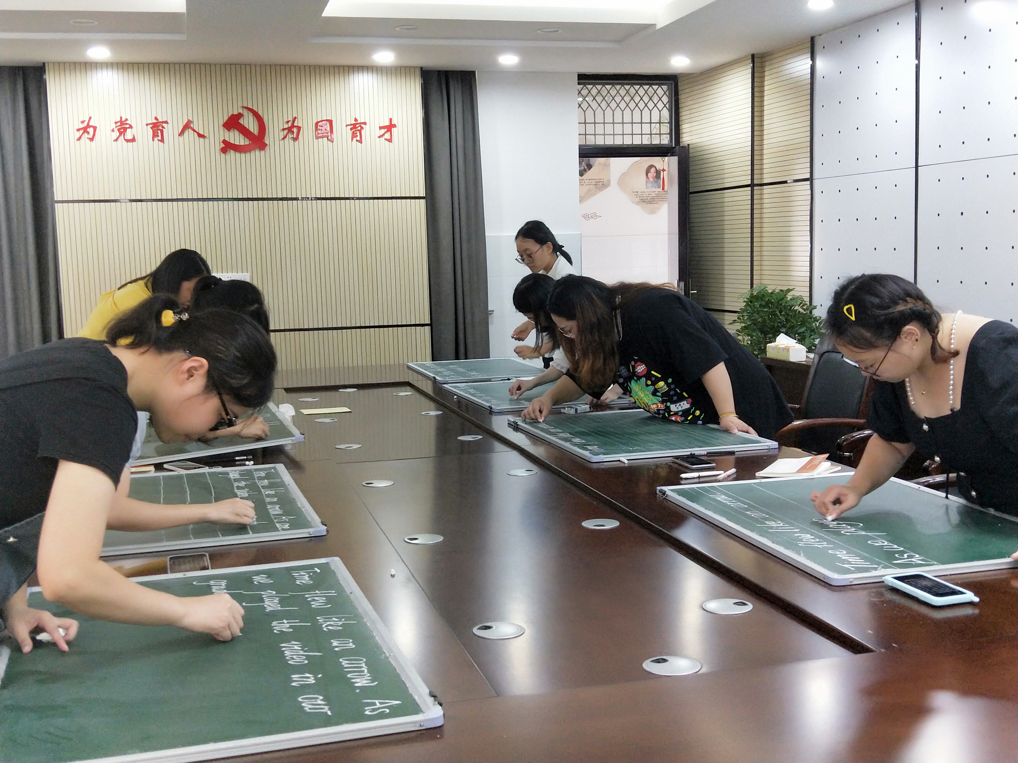 最后,全体英语教师还进行了一次粉笔字的现场书写展示,经过暑假的练习,所有老师的英文粉笔字书写都有了质的提升。