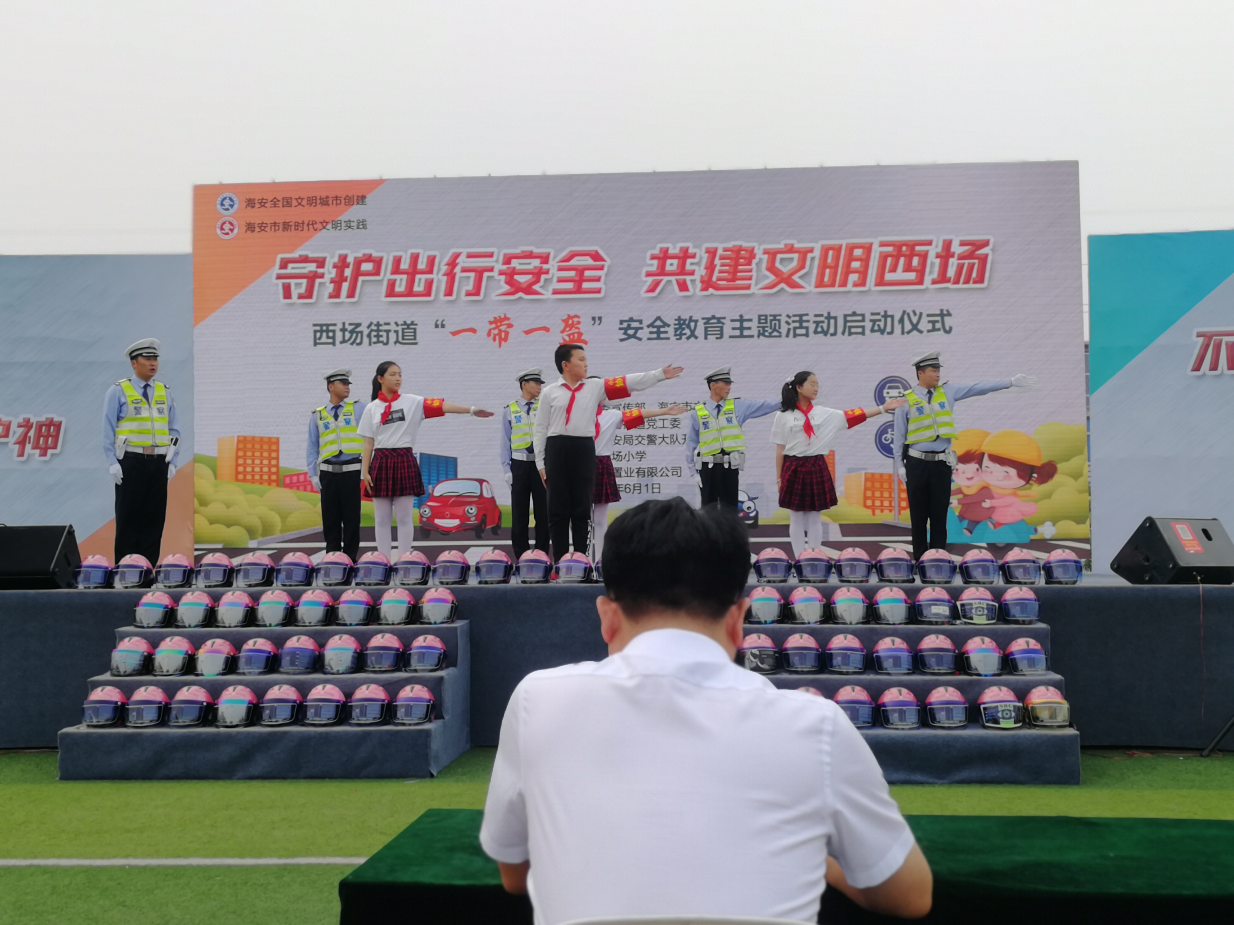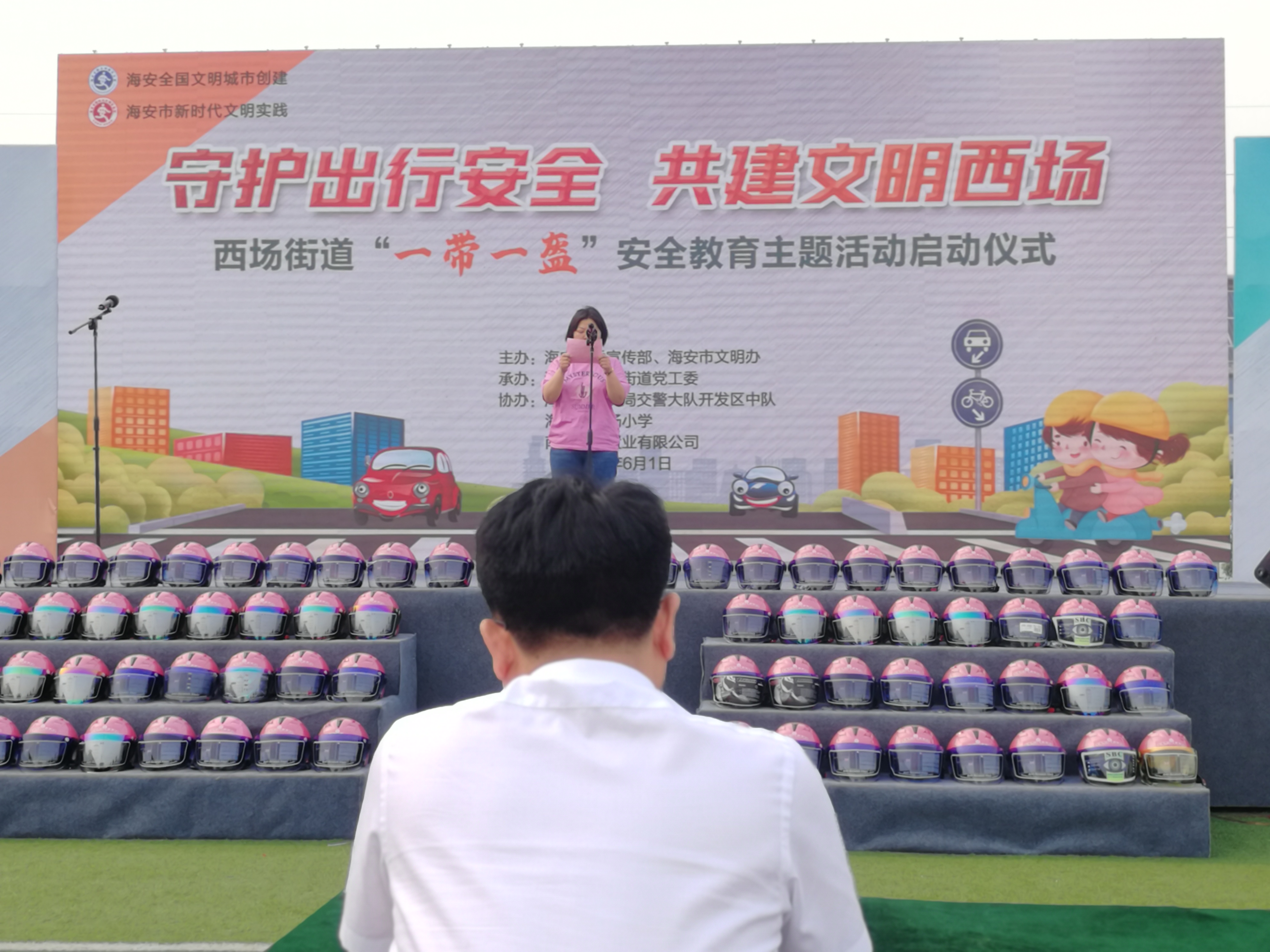 6月1日下午,由海安市委宣传部、海安市文明办主办,海安市西场街道党工委承办的“一带一盔”安全教育主题活动启动仪式在西场小学举行。