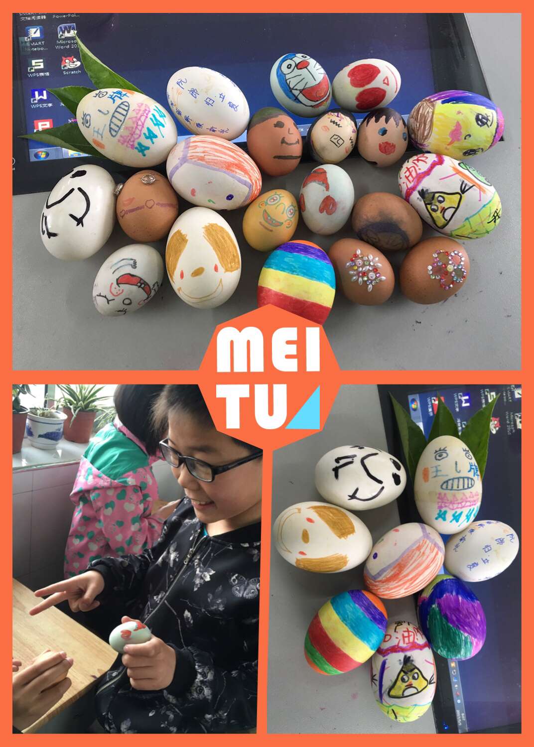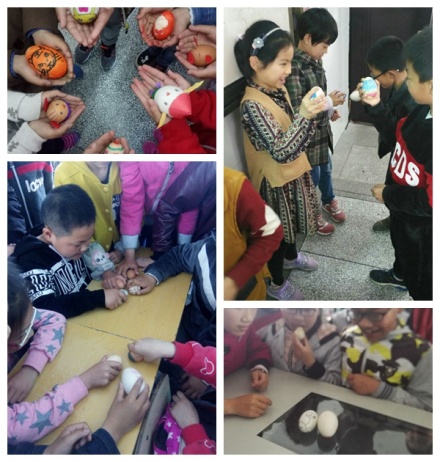 二是立夏斗蛋同欢乐。孩子们提前准备好了煮熟的黄澄澄的鸡蛋、白花花的鸭蛋、还有大个头的鹅蛋。一个个圆滚滚的蛋被孩子们的巧手彩笔画上了斑斓的图案。各班级还将最漂亮最有创意的彩蛋进行了集体展示。紧接着,学生们期待已久的斗蛋游戏也拉开了帷幕,彩蛋的尖头碰尖头,圆头对圆头,你碰我撞,好不快活,孩子们的加油助威声响彻教室。经过同桌比、小组比、班级比、年级比、学校比,最后的胜者被封为“蛋王之王”。别开生面的斗蛋比赛,让孩子体会了传统游戏的乐趣,过足了“立夏瘾”。
